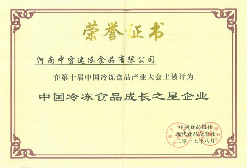 2017年中國冷凍食品“成長之星企業(yè)”